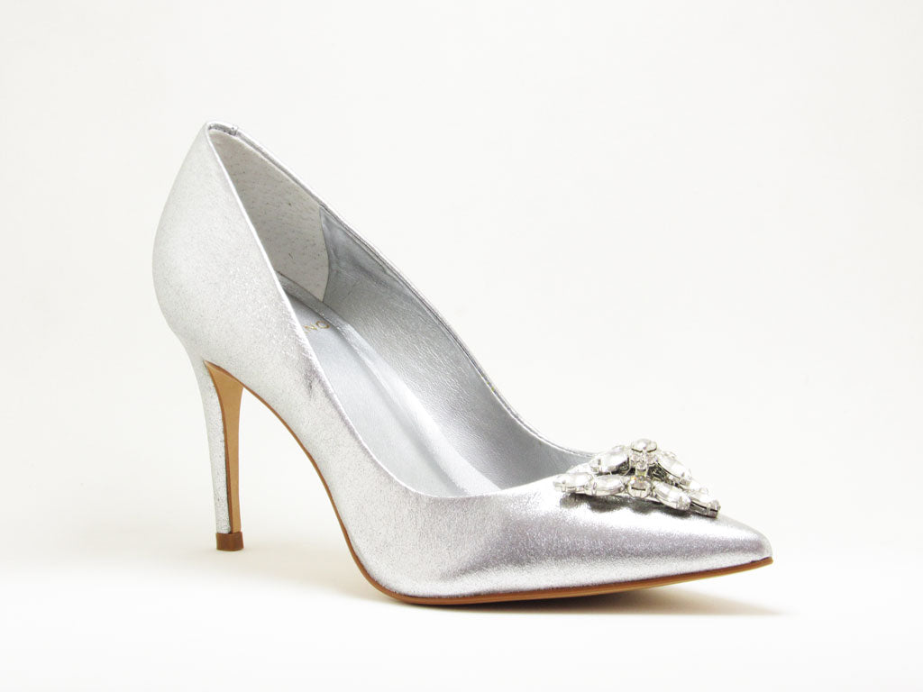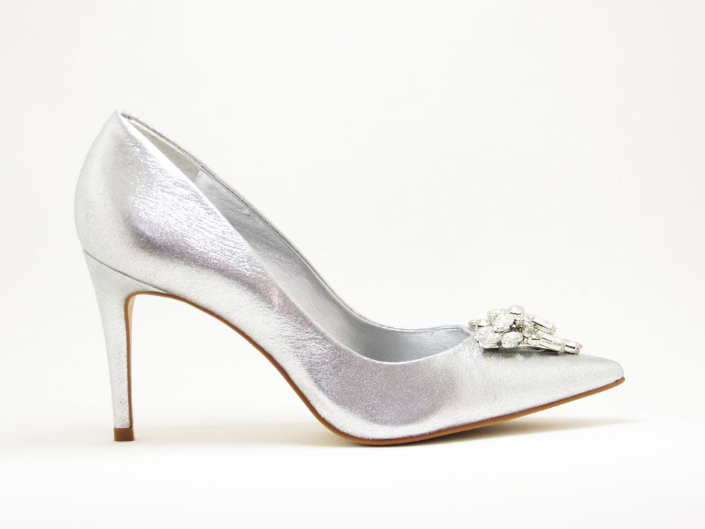 Scarpin Prata é uma ótima opção para ocasiões especiais. Ele conta com a força do metalizado que ele vem ocupando seu espaço no universo da moda., podendo ser um substituto perfeito ao tradicional Nude. Agora quando o assunto é moda festa ele sempre será o queridinho, o modelo acompanha aplicação de pedraria sob o cabedal super charmoso. Um Sapato para o ano todo e para todas as ocasiões.