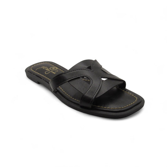 Rasteira Calf Preta com Anel Dourado- Lilian Soares