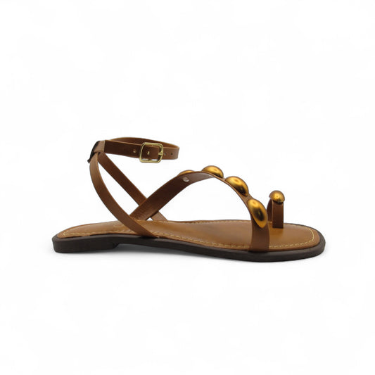 Rasteira Caramelo Enfeite Dourado- Lilian Soares