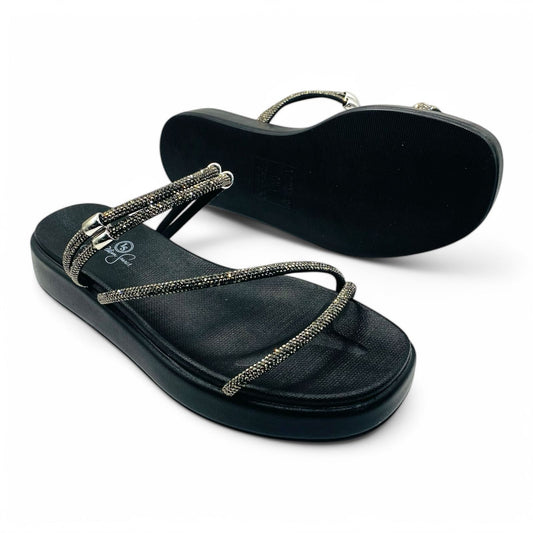Sandália Rasteira Preta Slim Pedras Douradas - Lilian Soares