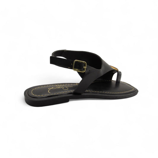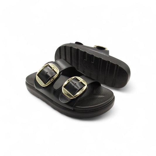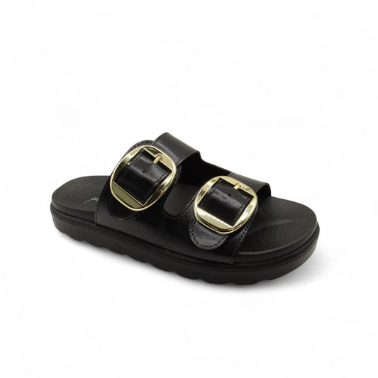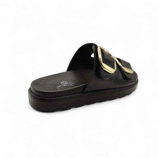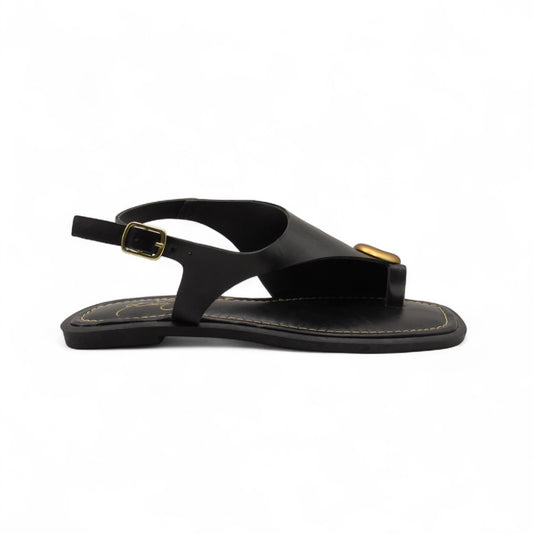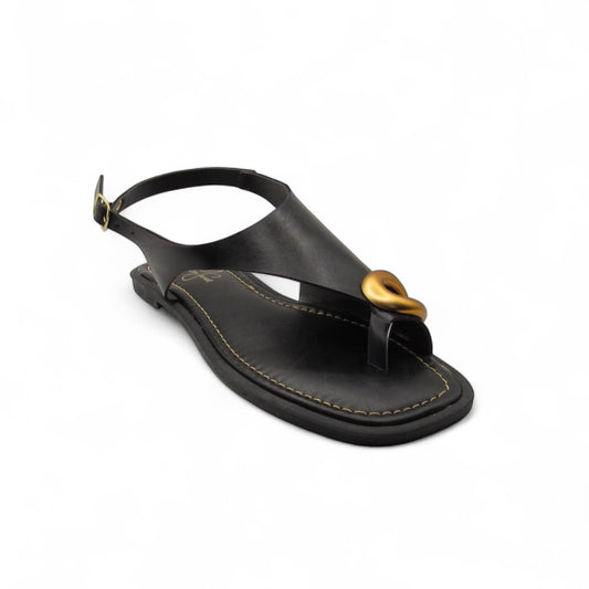 Rasteira Calf Preta com Anel Dourado- Lilian Soares