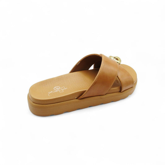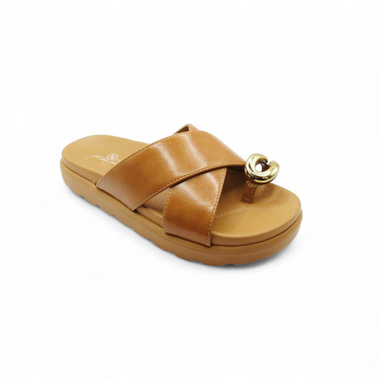 Sandália Papete Caramelo com anel Dourado - Lilian Soares
