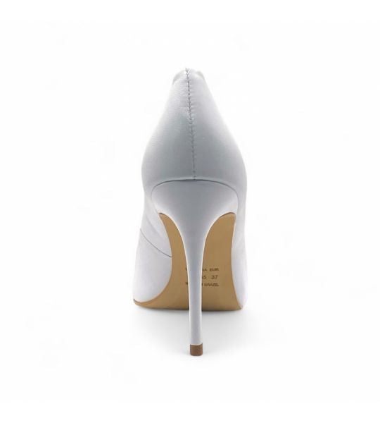 O Scarpin branco perfeito para quem busca sofisticação, conforto e um toque de modernidade. Feito em couro pelica, conhecido por sua maciez extrema e caimento impecável, este modelo entrega beleza e conforto do primeiro ao último passo. Seu salto agulha de 10 cm alonga a silhueta, enquanto o bico levemente alongado evita apertos nos dedos, garantindo elegância sem abrir mão do bem-estar.