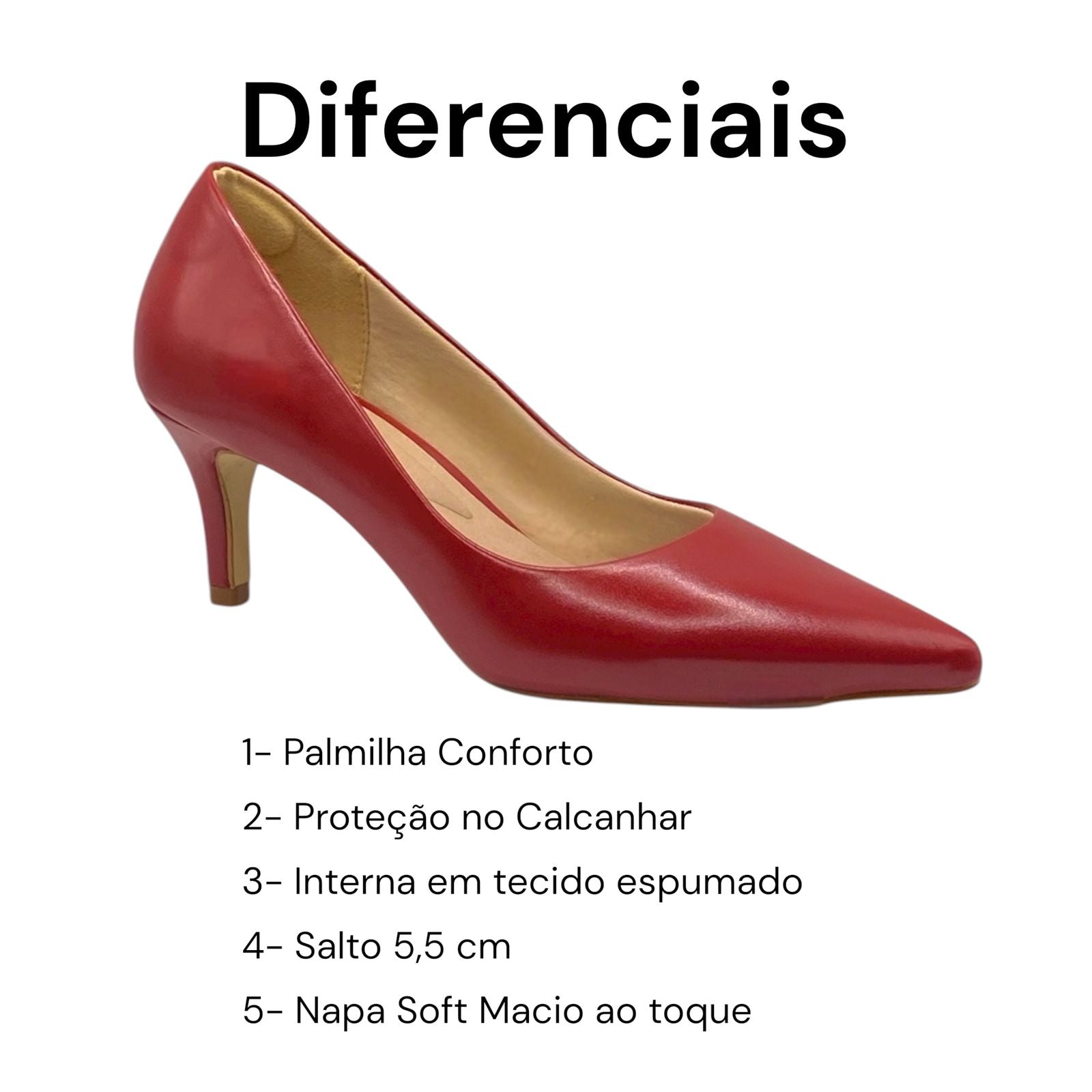 Salto 5,5 cm — altura perfeita para quem busca conforto sem abrir mão da elegância.