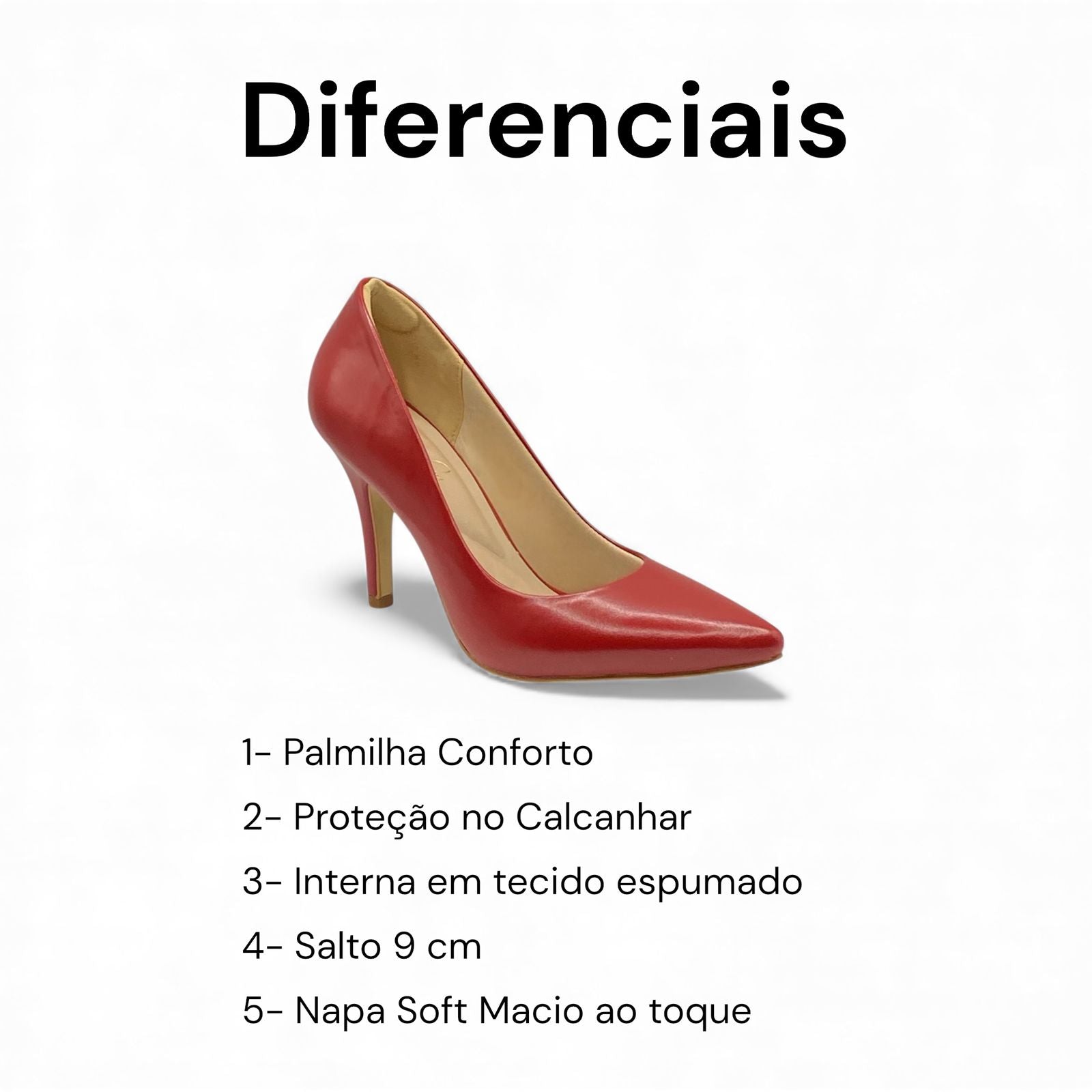 • Salto 9cm — altura perfeita para quem busca conforto sem abrir mão da elegância.
