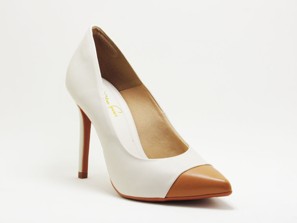 Scarpin Bicolor salto fino é um calçado perfeito para qualquer mulher, sua combinação de cores neutras, traz elegância e exclusividade ao seu look,