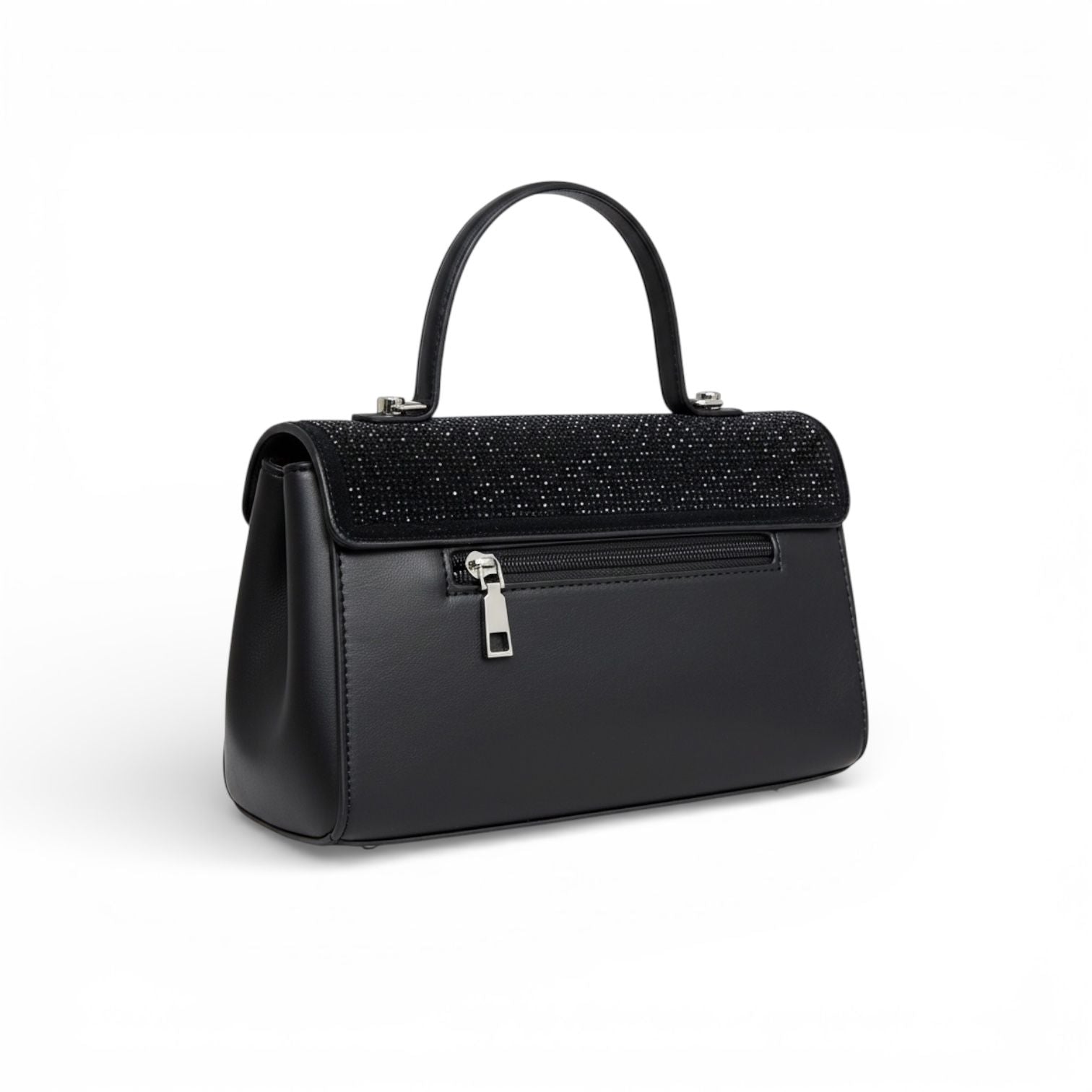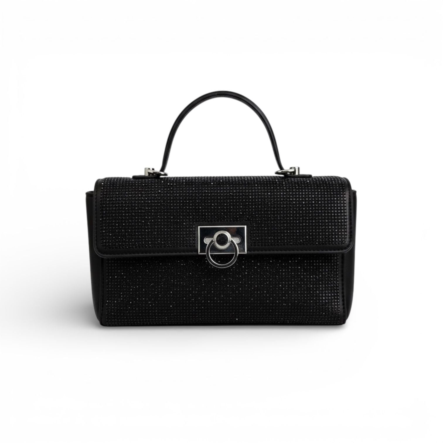 A Bolsa Preta Média Cravejada em Strass é a escolha perfeita para mulheres que desejam um acessório impactante, elegante e cheio de glamour. Com design sofisticado e acabamento todo cravejado em strass, ela transforma qualquer produção em um look poderoso e inesquecível.
