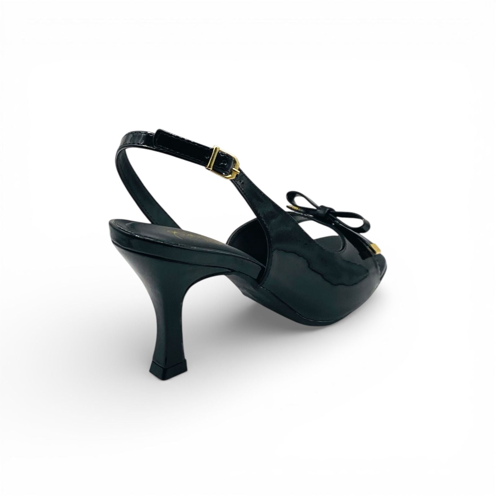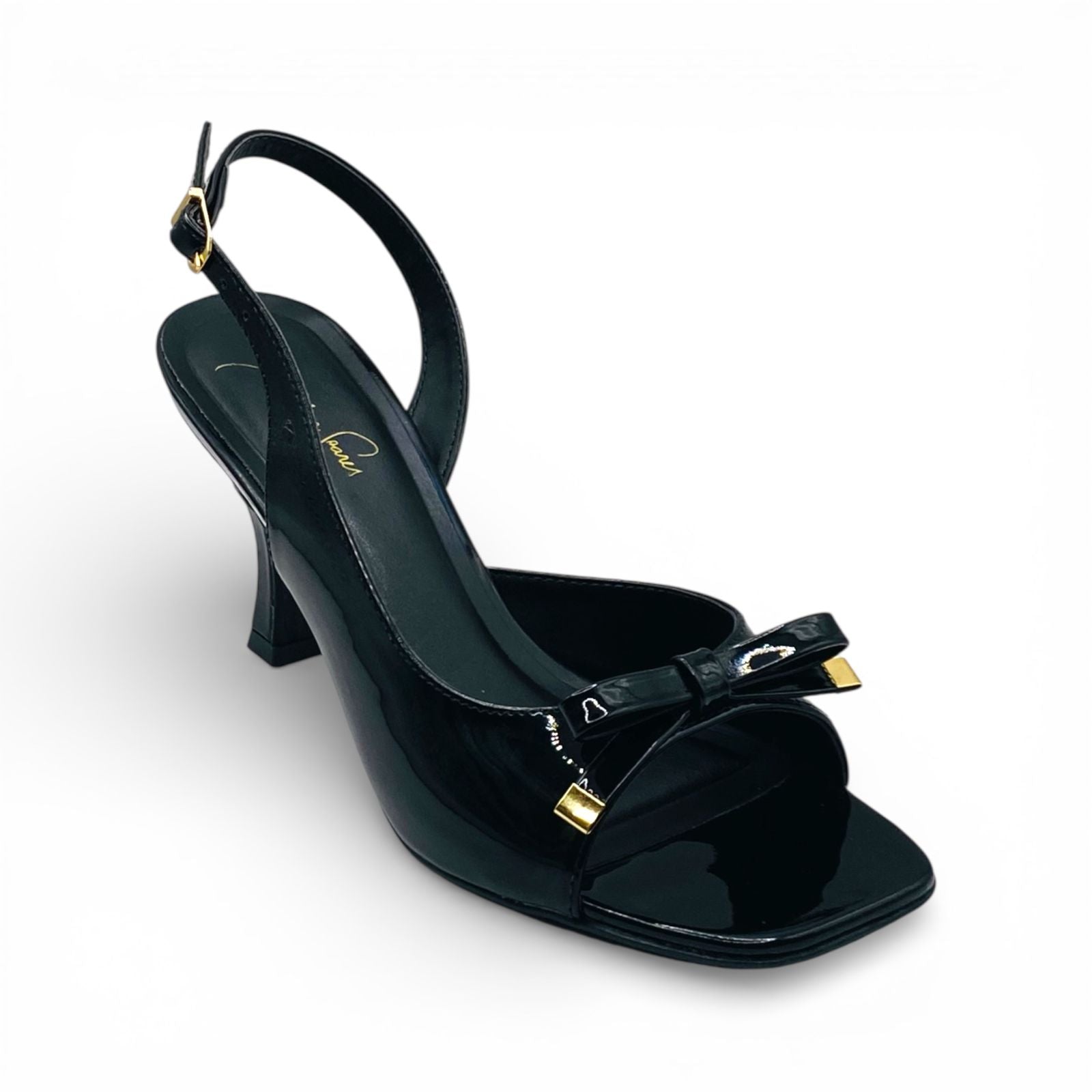 Sandália Peep Toe Lilian Soares em Preto Verniz com Laço Delicado e Salto 7cm