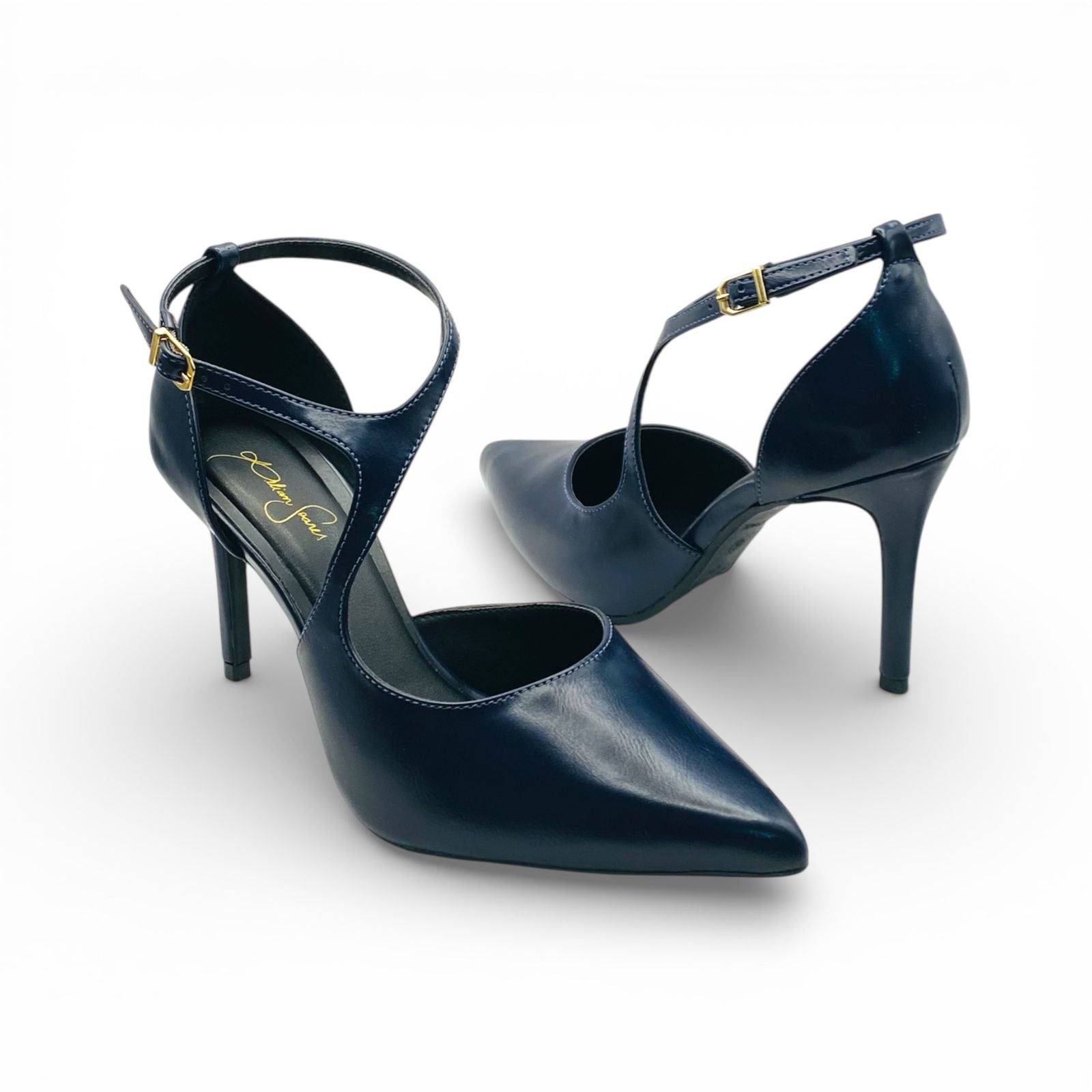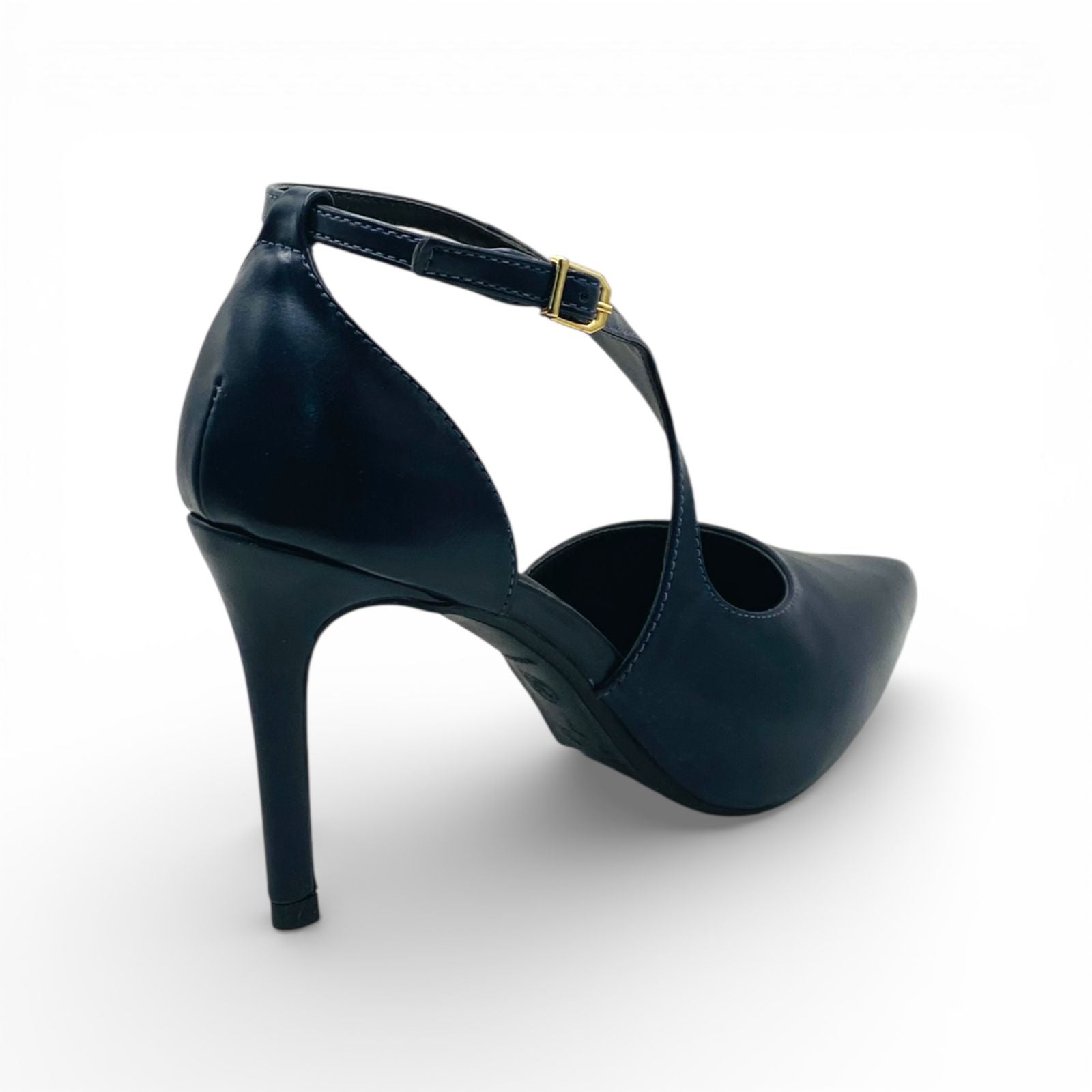Scarpin Lilian Soares Azul Marinho Acetinado – Salto 11cm com Tornozeleira