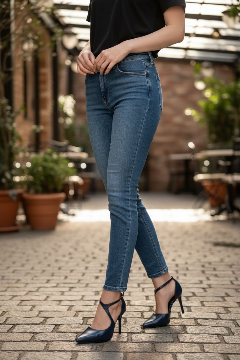 * Eventos de Gala e Festas: Combine com vestidos de fenda ou modelos midi em tons de prata, dourado ou o próprio marinho para um visual monocromático luxuoso.