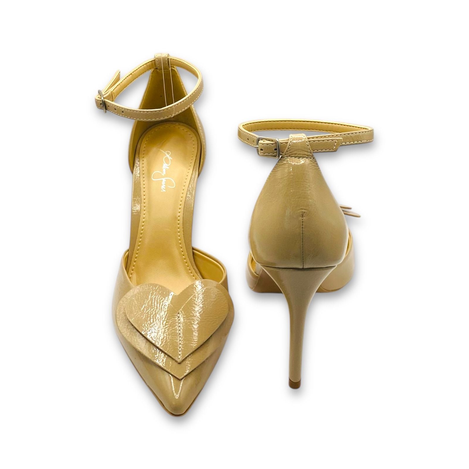 * Coração Artesanal: Um detalhe feito à mão que confere exclusividade e um toque de "alta costura" ao calçado.