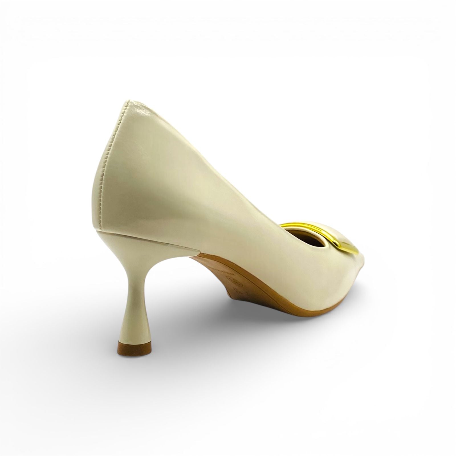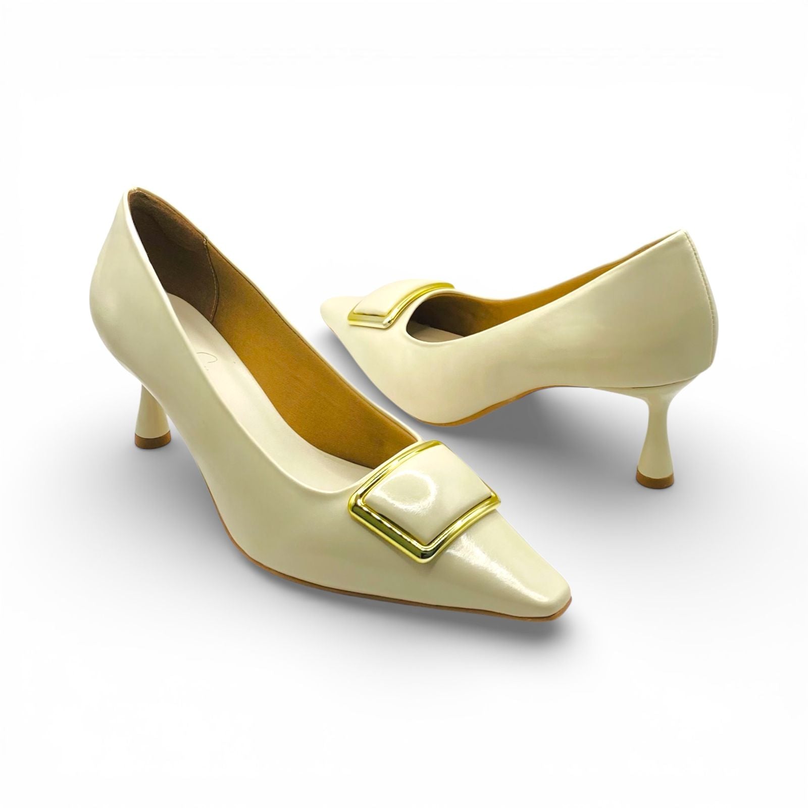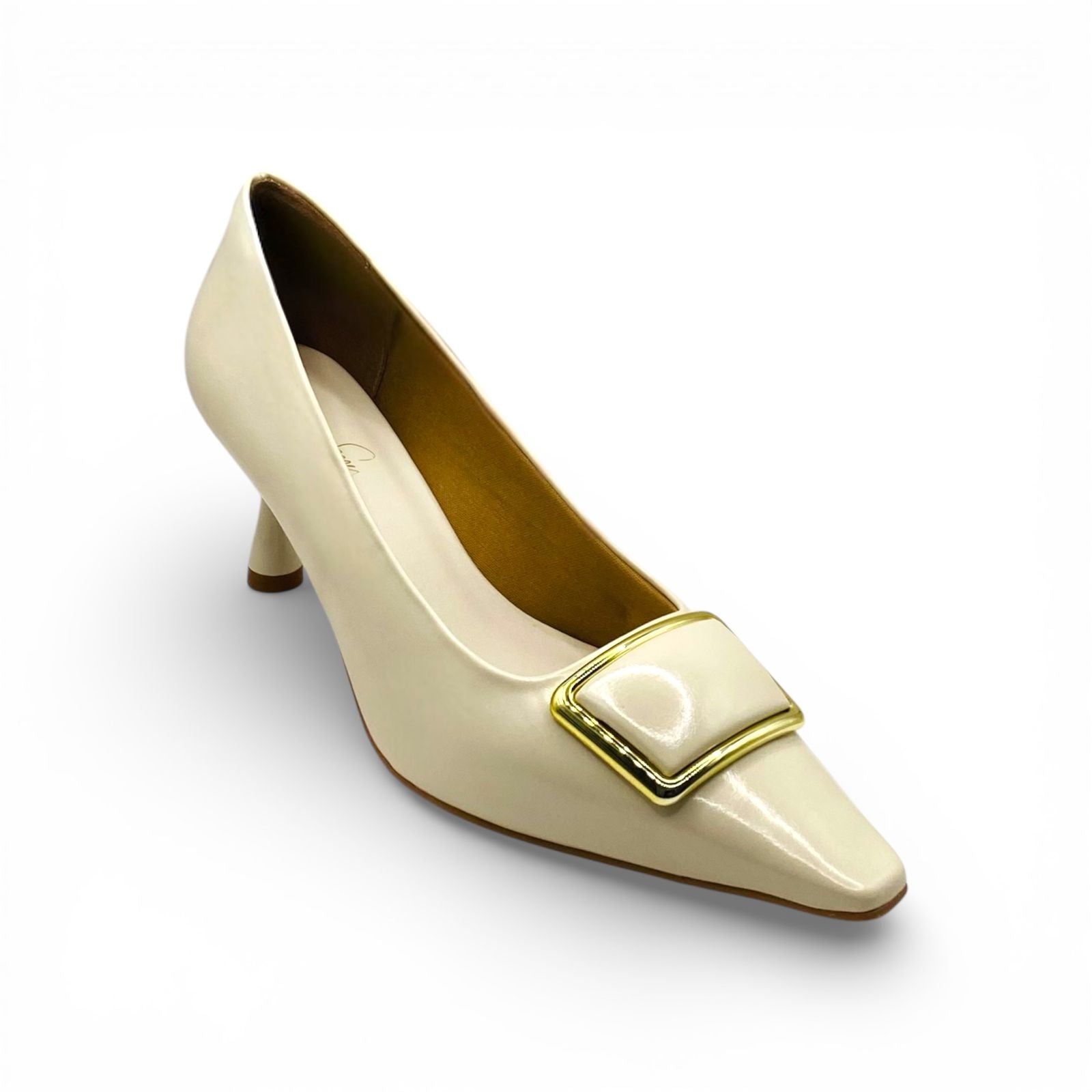 A sofisticação encontra o conforto absoluto neste scarpin Lilian Soares. Na cor off white, este modelo é a personificação da elegância clássica com um toque contemporâneo. O acabamento acetinado de brilho suave destaca o bico fino estruturado, que é adornado por uma luxuosa fivela geométrica com contorno dourado. Projetado para a mulher que busca um calçado versátil e refinado, ele transita com perfeição de reuniões de negócios a eventos sociais sofisticados.